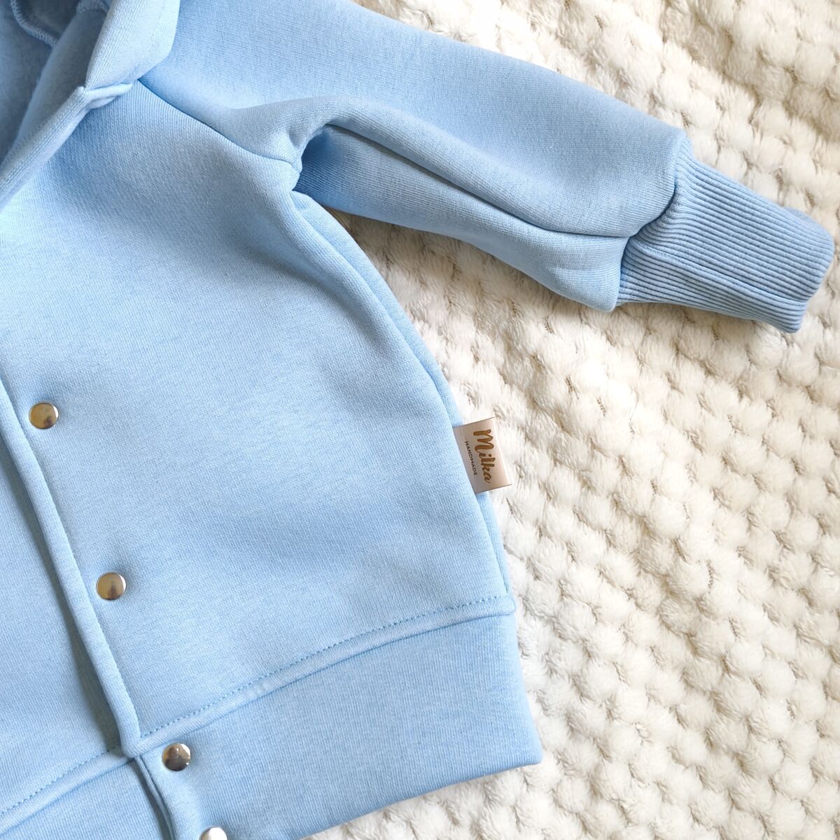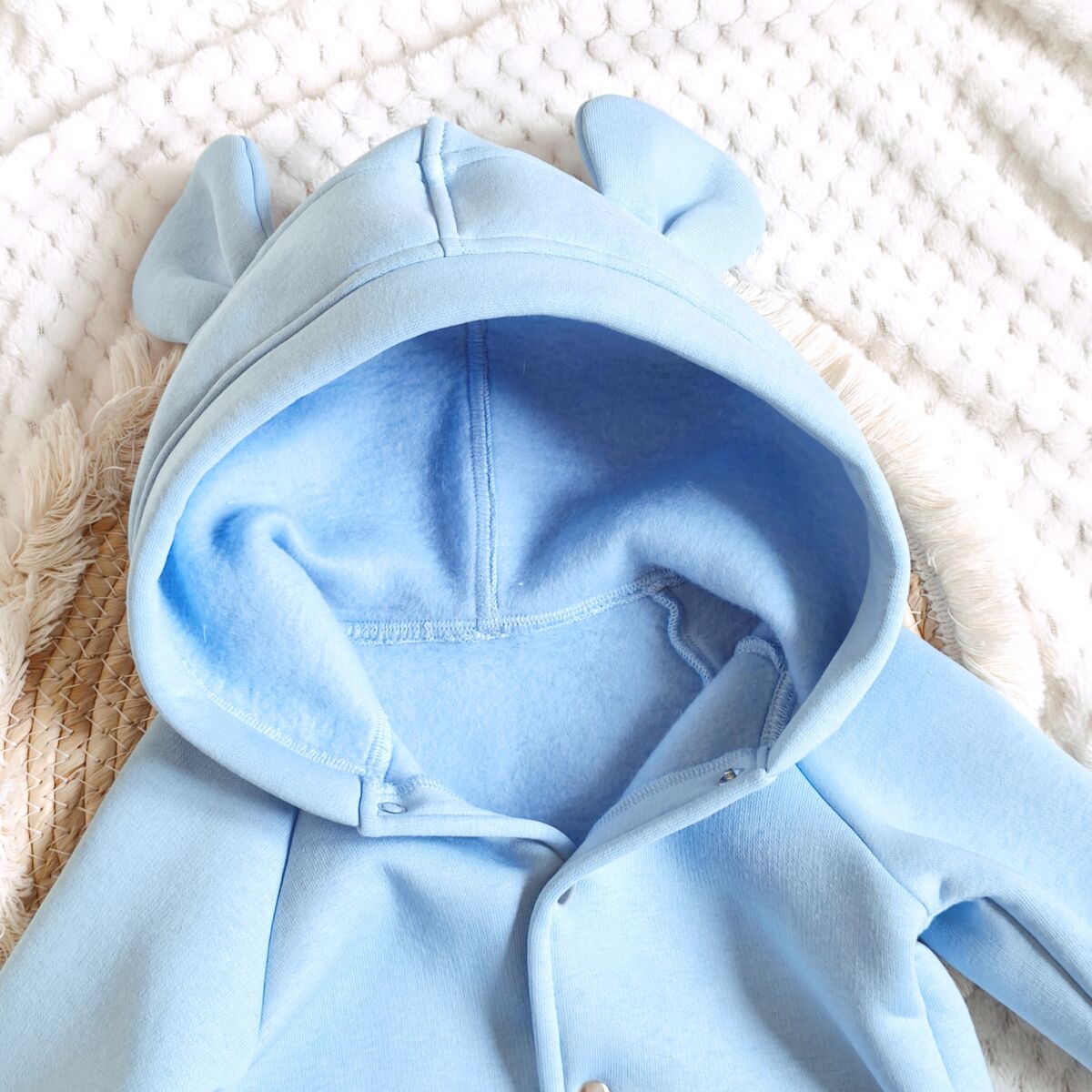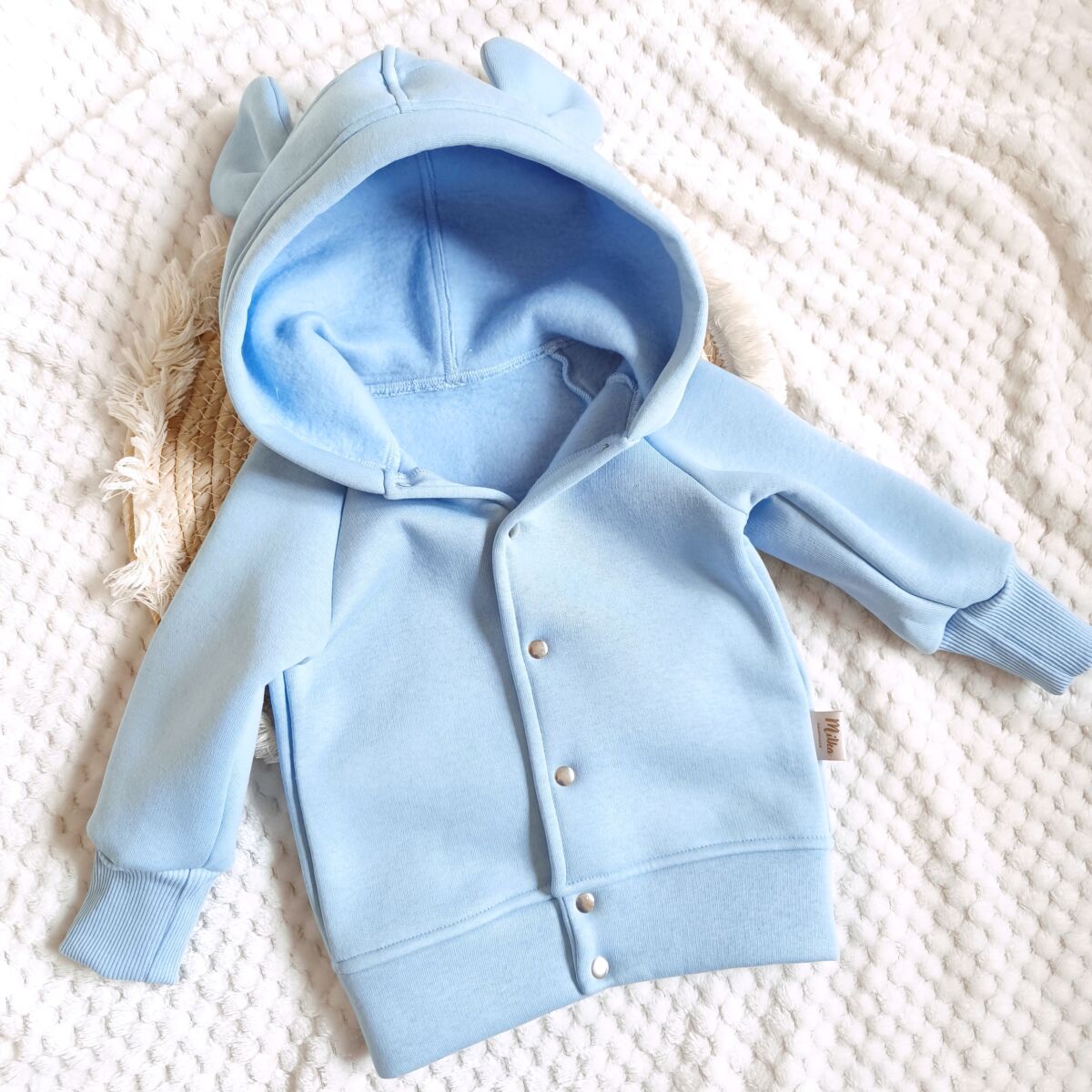 Ocieplana bluza dla chłopca błękitna z uszami misia rozpinana, uszyta z cudownie miękkiej dresówki drapanej najwyższej jakości.