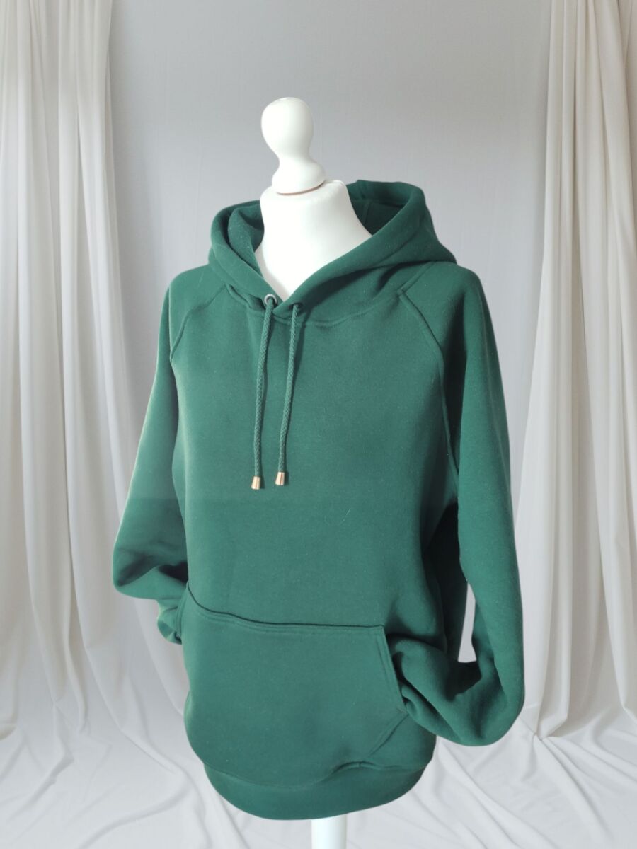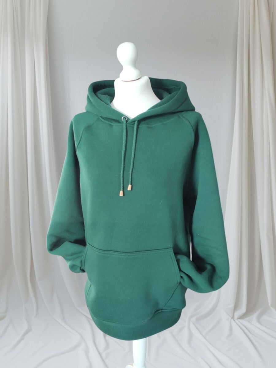 Bluza damska butelkowa zieleń z kapturem uszyta z cudownie miękkiej dresówki bawełnianej najwyższej jakości .
