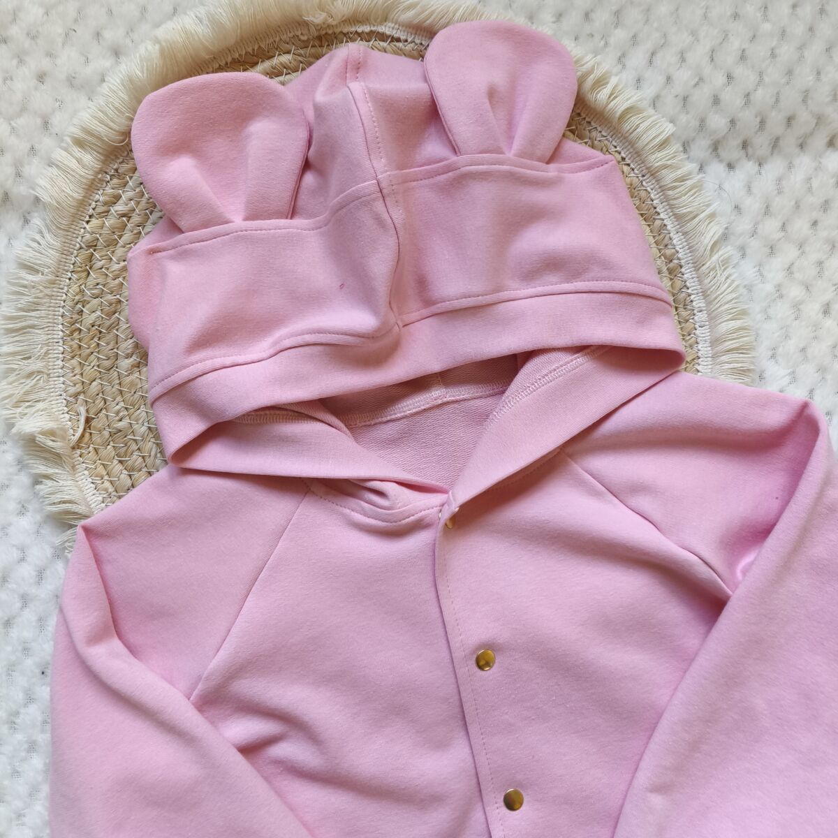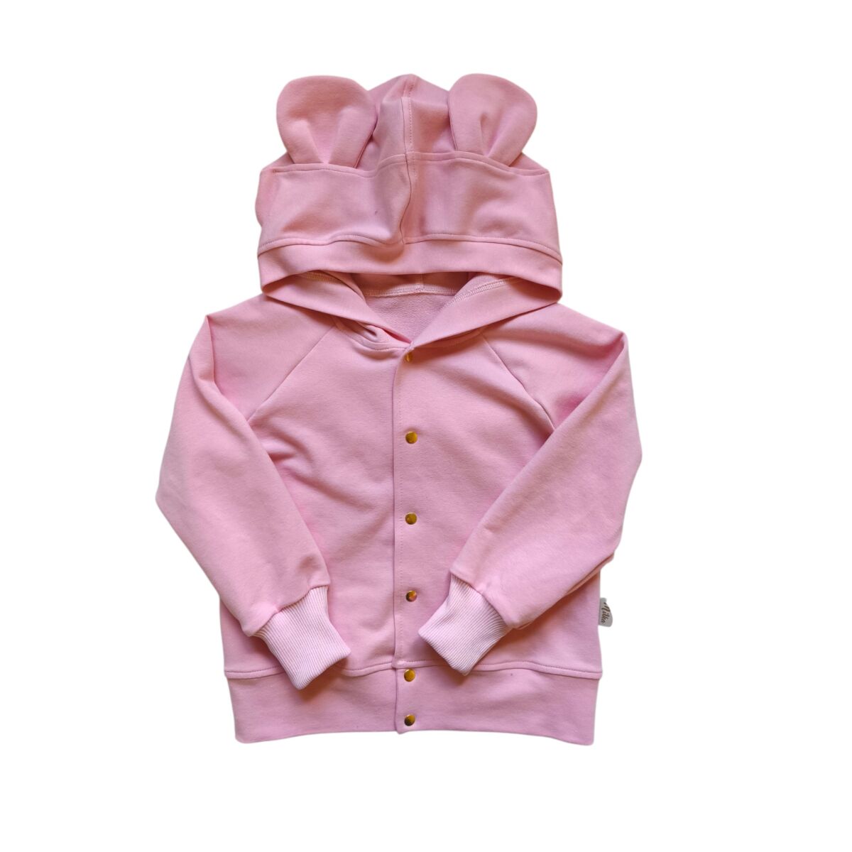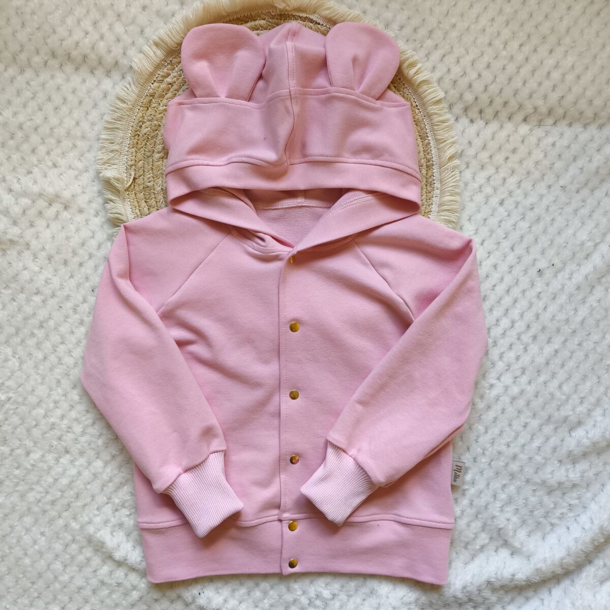 Bluza dla dziewczynki z uszami misia pastelowy róż rozpinana dla dzieci uszyta z cudownie miękkiej dresówki bawełnianej najwyższej jakości.