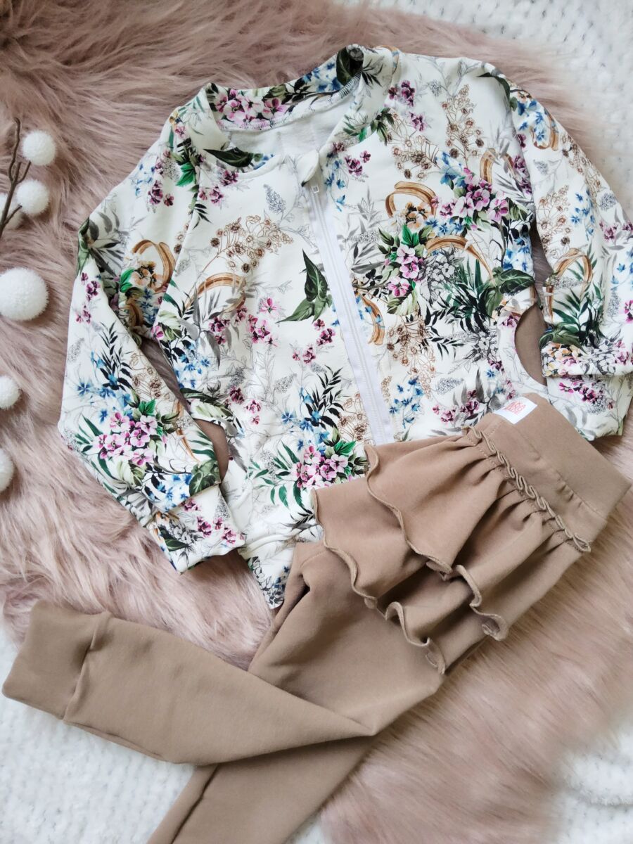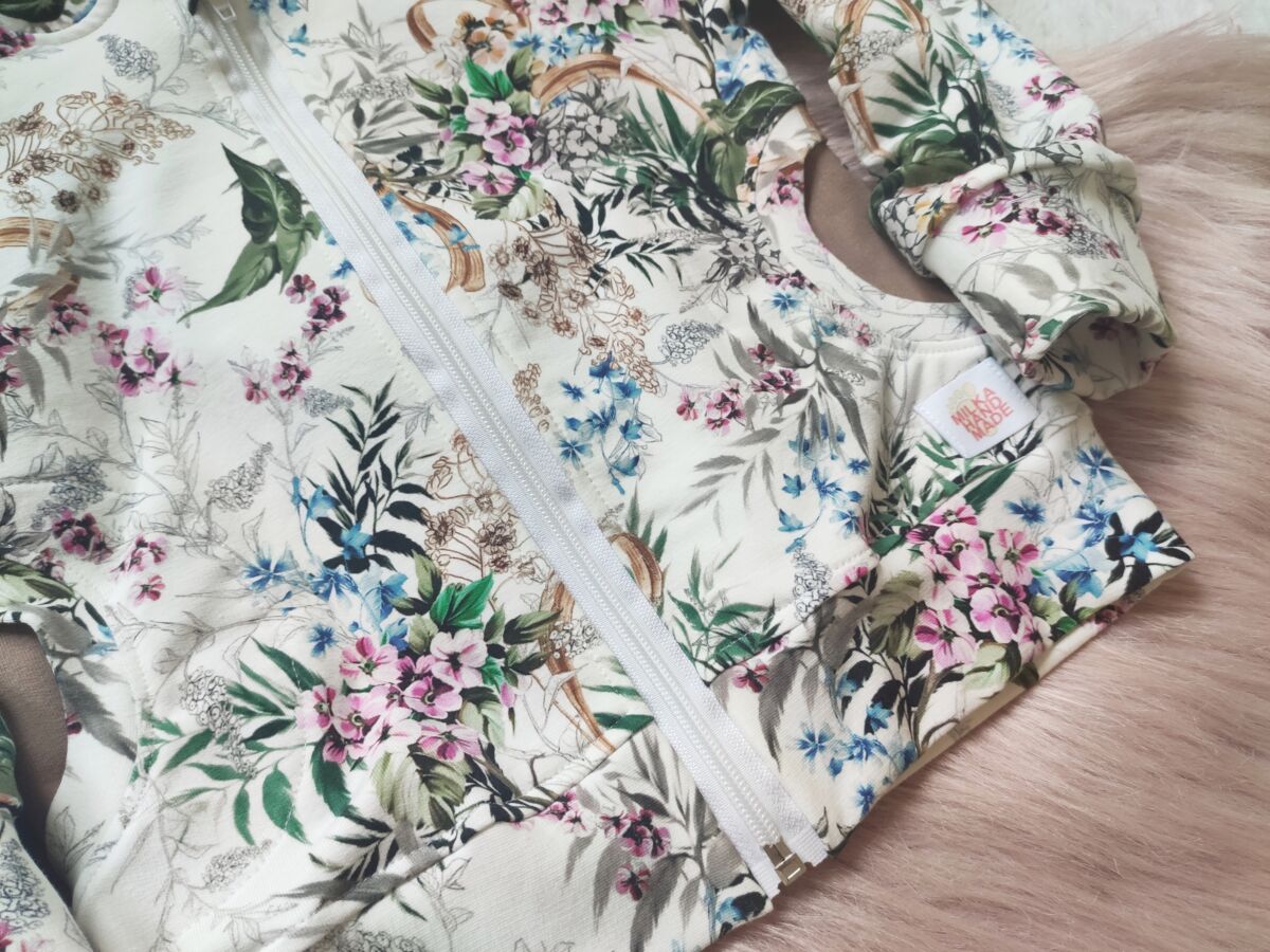 Bluza na zamek dla dziewczynki łączka, uszyta z cudownie miękkiej dresówki bawełnianej najwyższej jakości premium z nadrukiem cyfrowym w pięknym kwiatowym motywie.