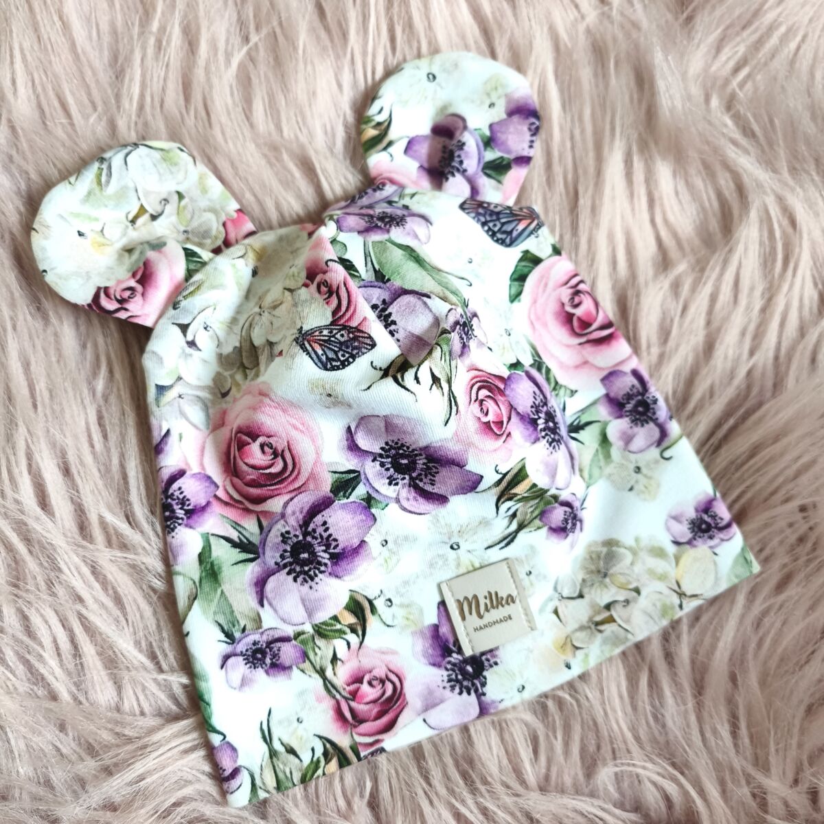 Czapka dla dziewczynki bzy, idealna na chłodniejsze dni.