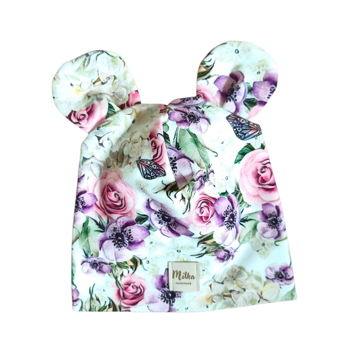 Czapeczka niemowlęca szyta jest pod obwód głowy dziecka.