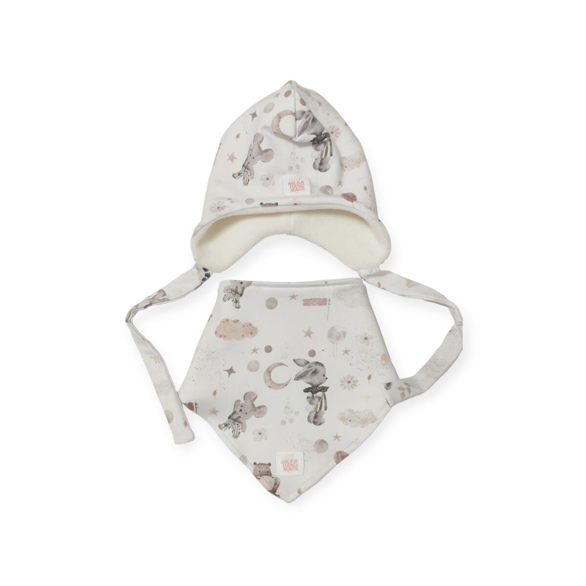 Czapka zimowa i chusta sweet dreams , ocieplane warstwą polaru w kolorze ecru, idealne na zimę.