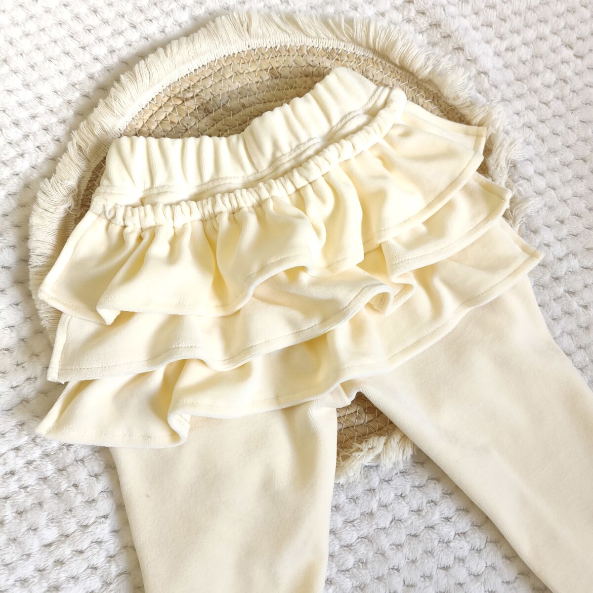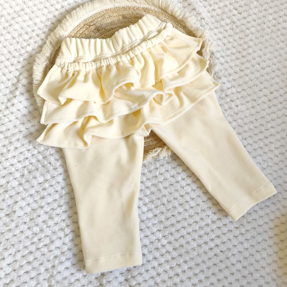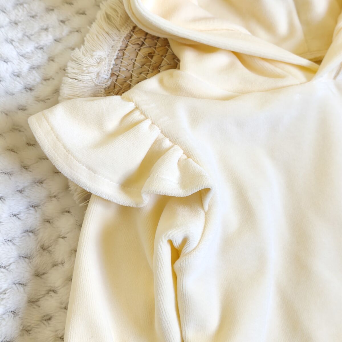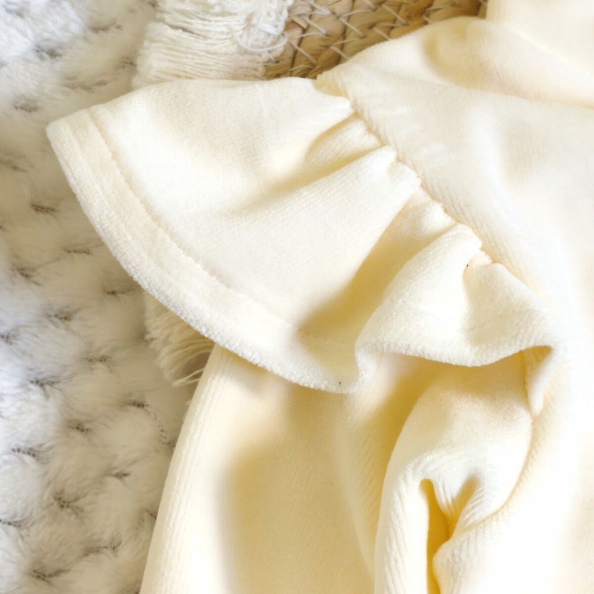 Dres welurowy dla dziewczynki śmietankowy to „musthave” każdego malucha. Zapewnia on wygodę i swobodne ruchy małemu dziecku.