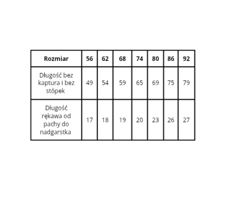 Dokonując zakupu warto zapoznać się z tabelą rozmiarów Tabela rozmiarów