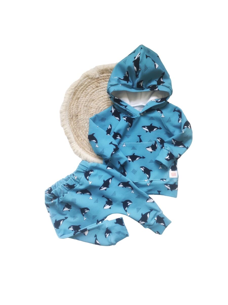 Komplet dresowy dla chłopca orki, uszyty z cudownie miękkiej dresówki bawełnianej najwyższej jakości premium z nadrukiem cyfrowym w pięknym dziecięcym motywie.