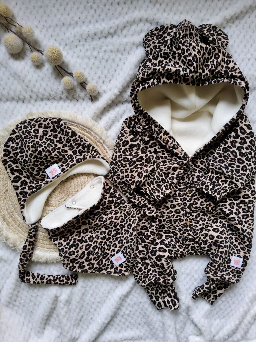 Na stronie sklepu znajdziecie również rampers bez ocieplenia Rampers panterka z uszami na beżowym tle