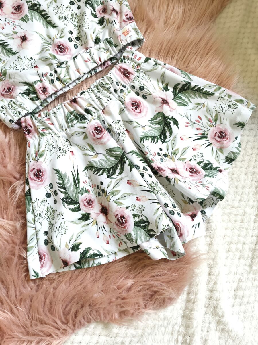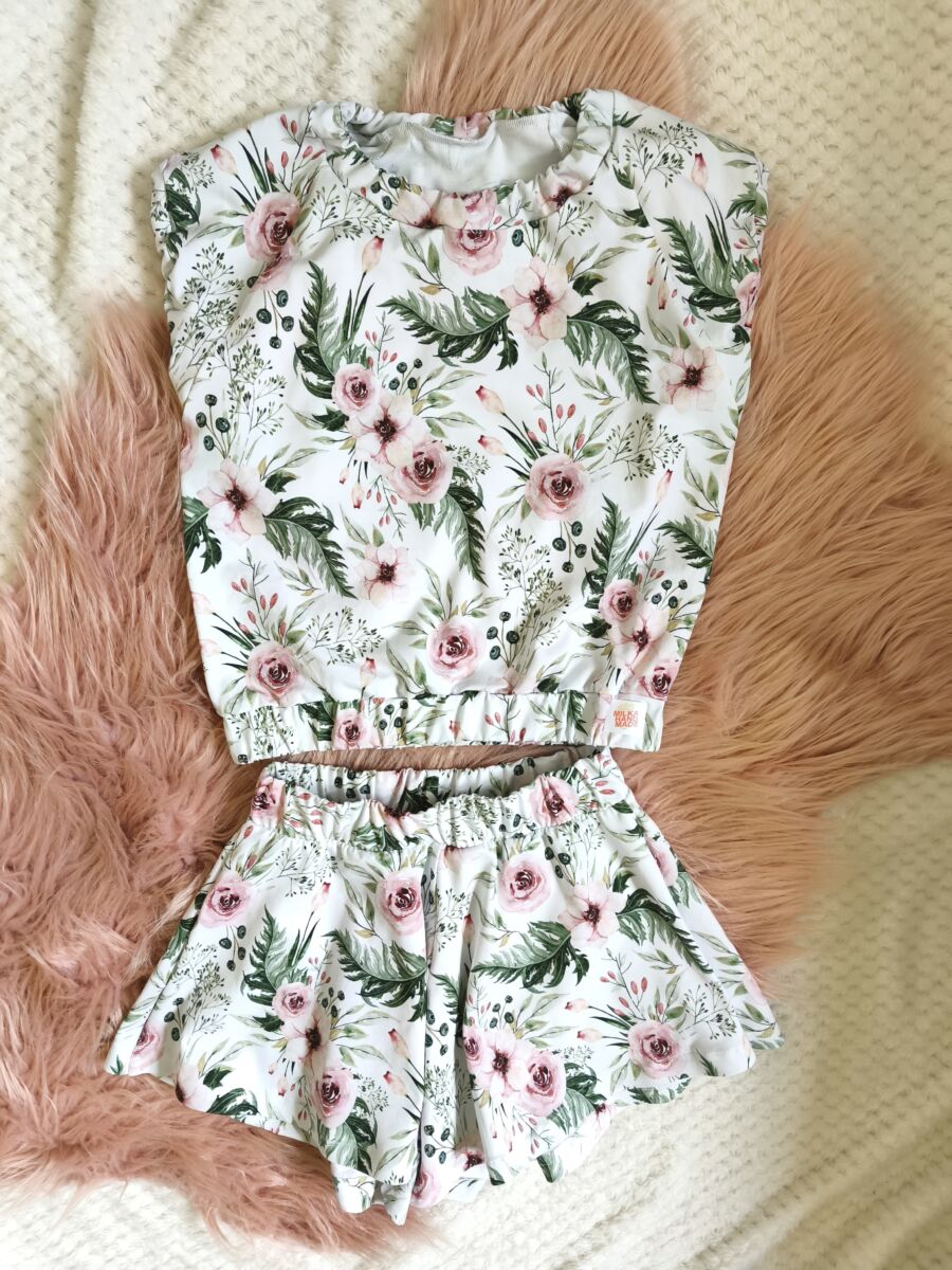 Spódnico-spodenki dla dziewczynki kwiaty w ogrodzie sprawdzą się jako dodatek do bluzeczki bawełnianej kwiaty w ogrodzie Bluzka dla dziewczynki kwiaty w ogrodzie
