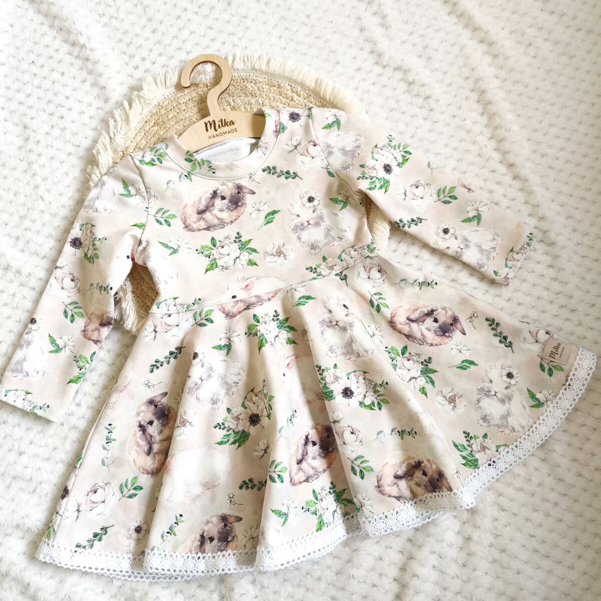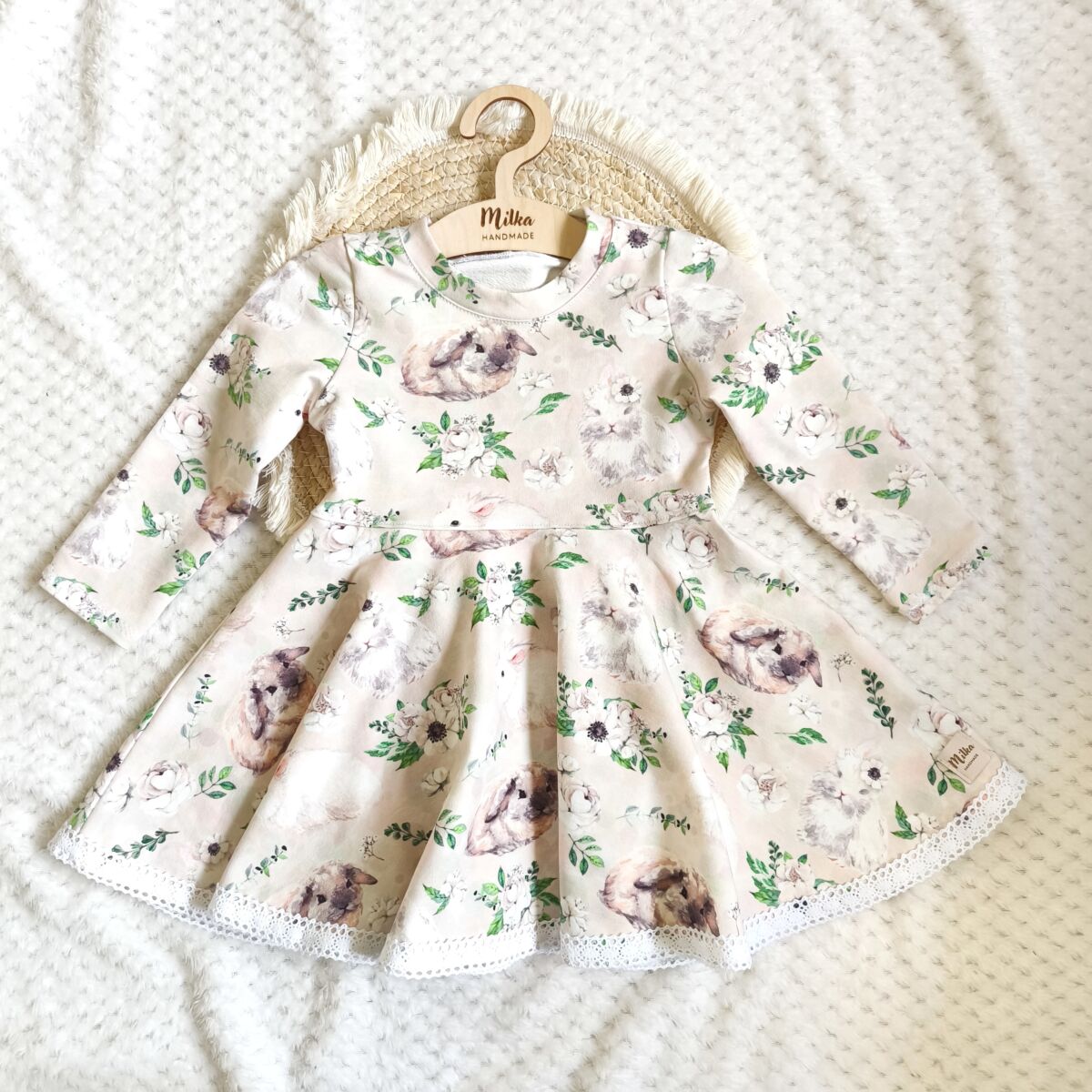 Sukienka dla dziewczynki króliczki to produkt nieprefabrykowany, szyty na zamówienie. Czas realizacji od 5-10 dni roboczych od zaksięgowania wpłaty na koncie, ale zazwyczaj jest szybszy. Wszystko zależy od ilości zamówień i dostępności materiału.