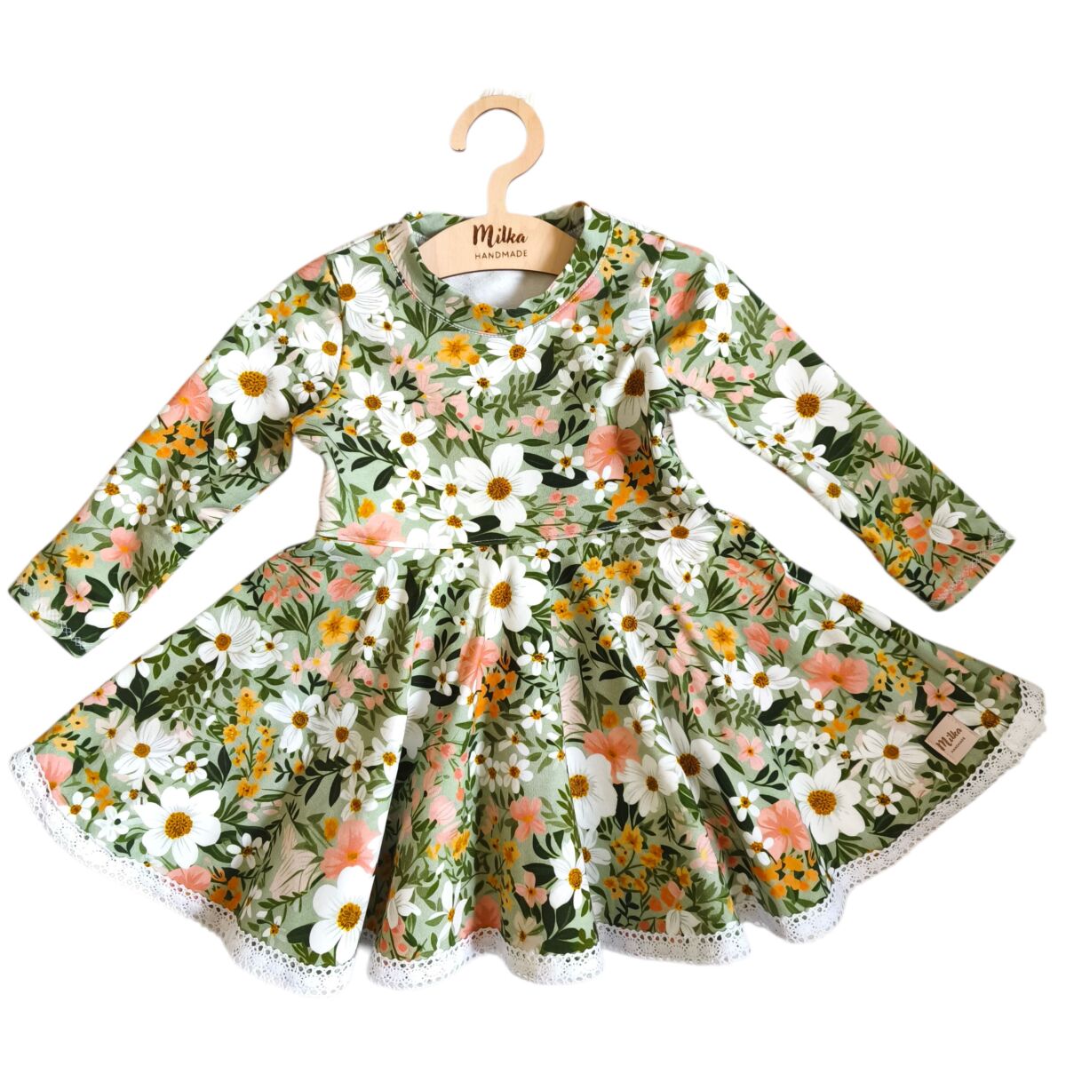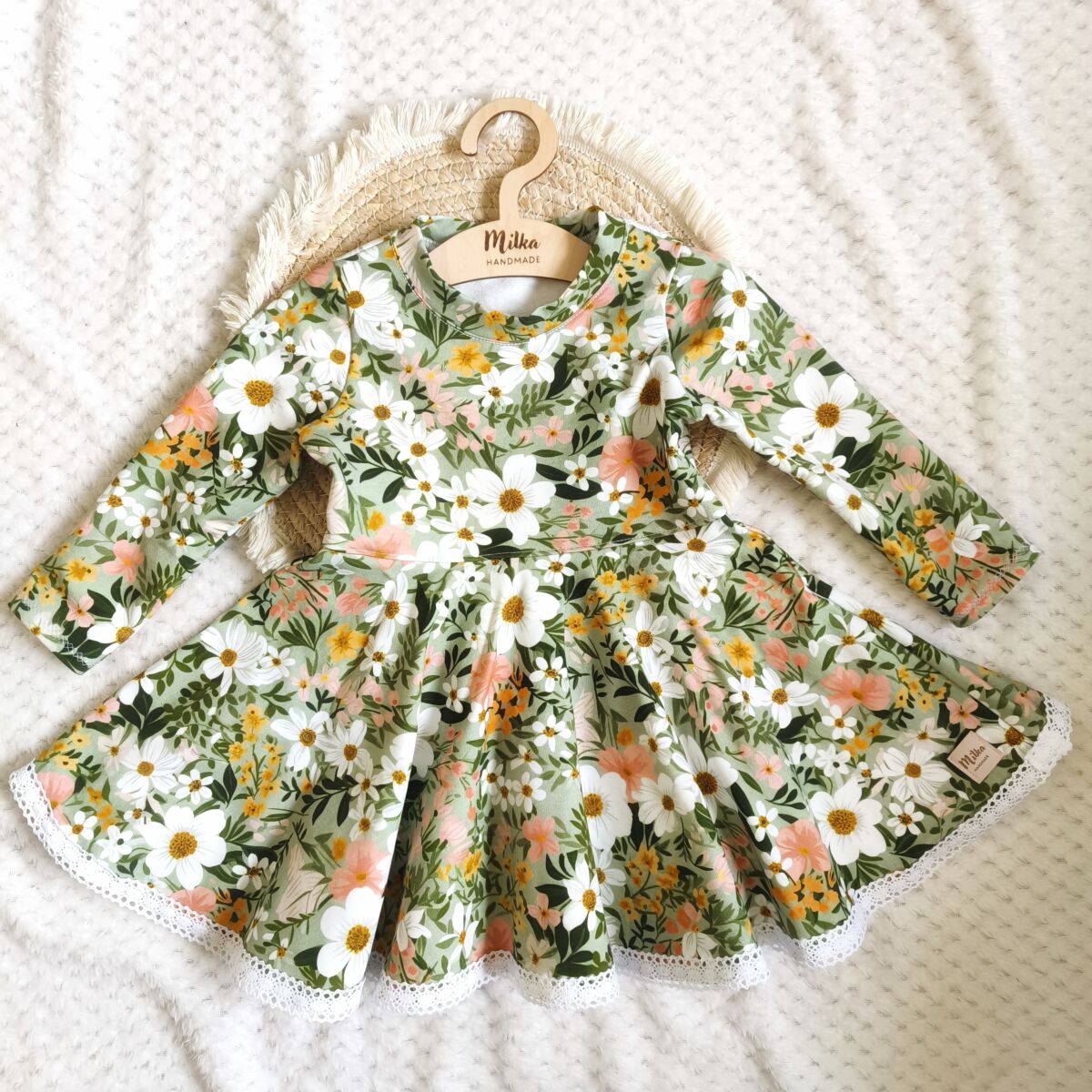 Sukienka dla dziewczynki kwiatowy ogród to produkt nieprefabrykowany, szyty na zamówienie. Czas realizacji od 5-10 dni roboczych od zaksięgowania wpłaty na koncie, ale zazwyczaj jest szybszy. Wszystko zależy od ilości zamówień i dostępności materiału.