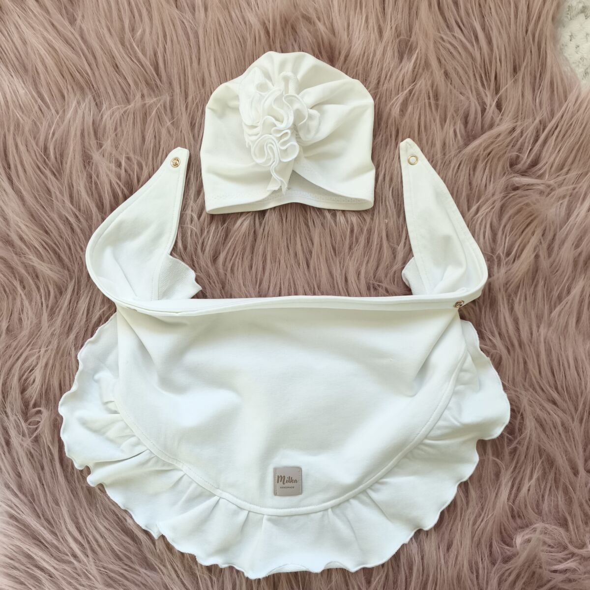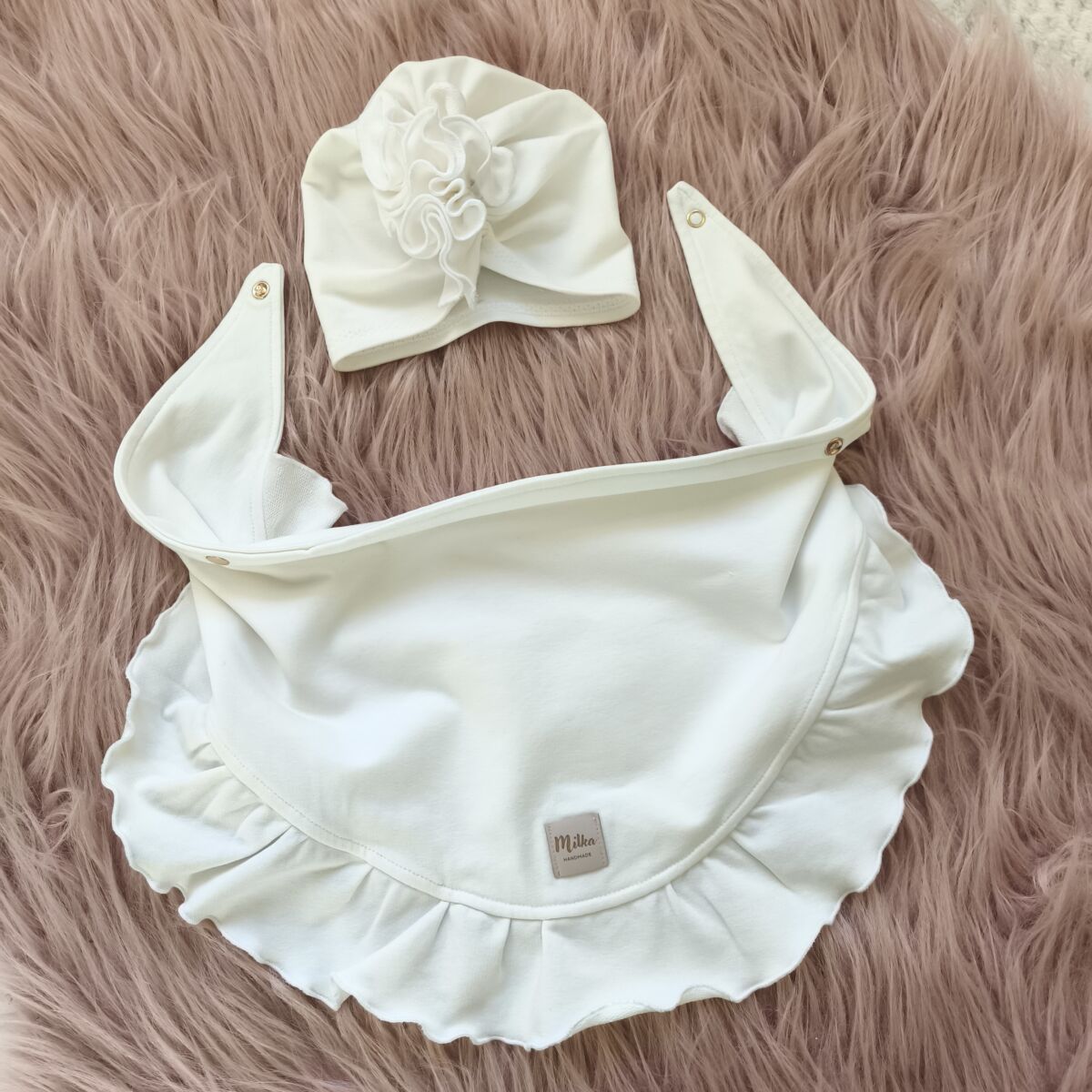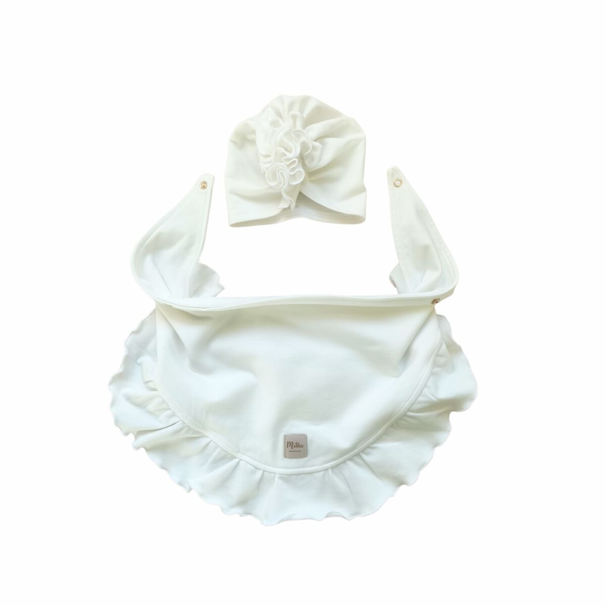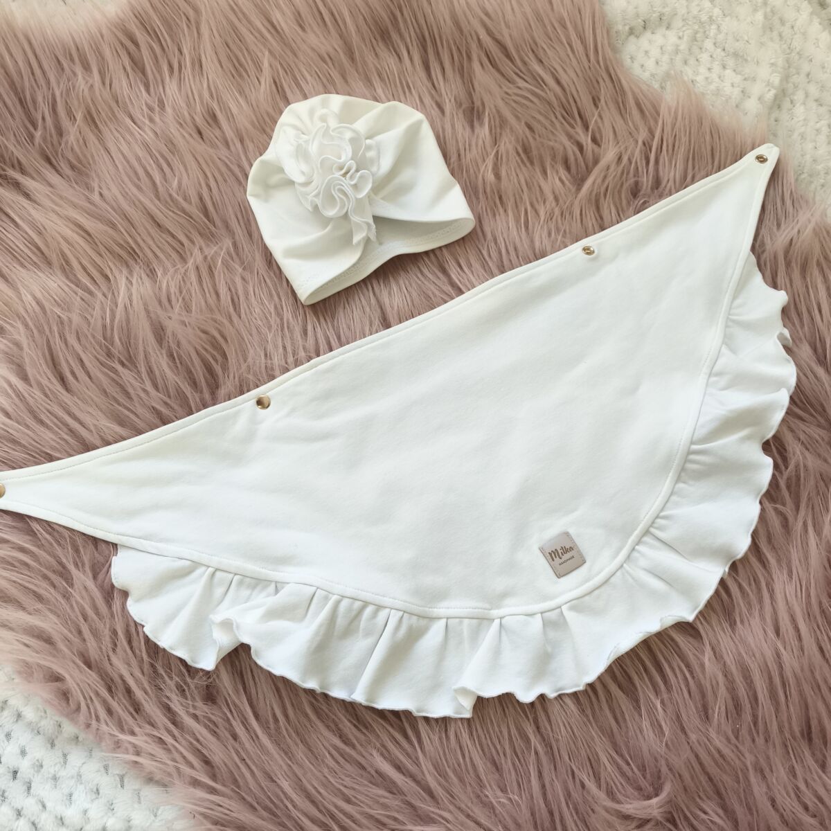 Turban i chusta z falbanką ecru dla dziewczynki to podstawa w szafie malucha. Więc jeśli kompletujesz wyprawkę dla swojego noworodka, to trafiłeś w odpowiednie miejsce.