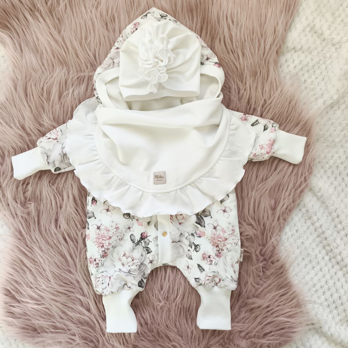 Komplet idealnie komponuje się z kombinezonem ocieplanym Kombinezon przejściowy białe róże